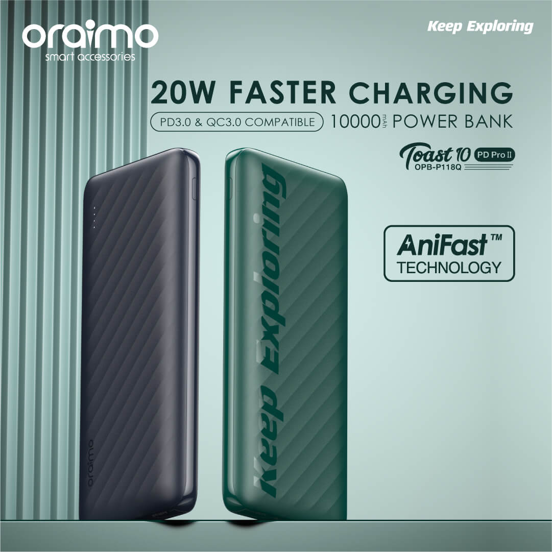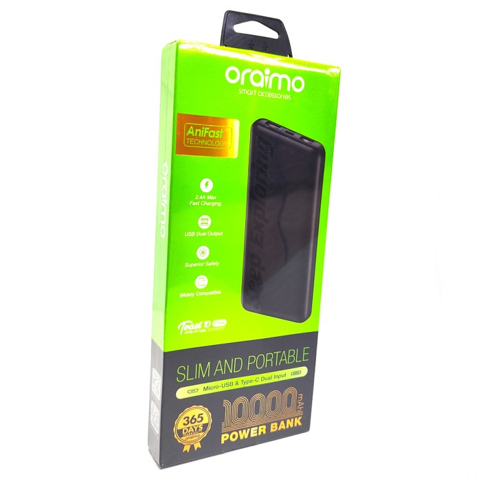 Oraimo 10000mAh 2.4A Max Fast Charging Portable Power Bank- OPB-P118D